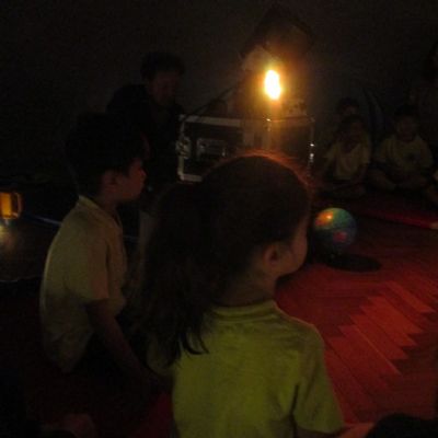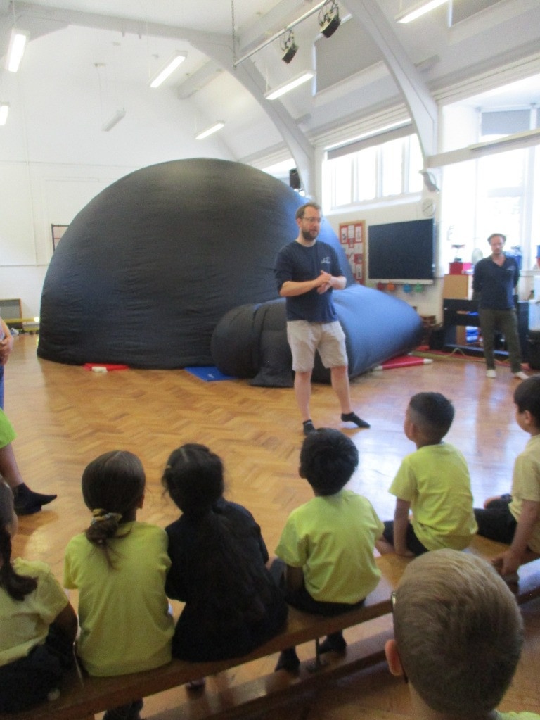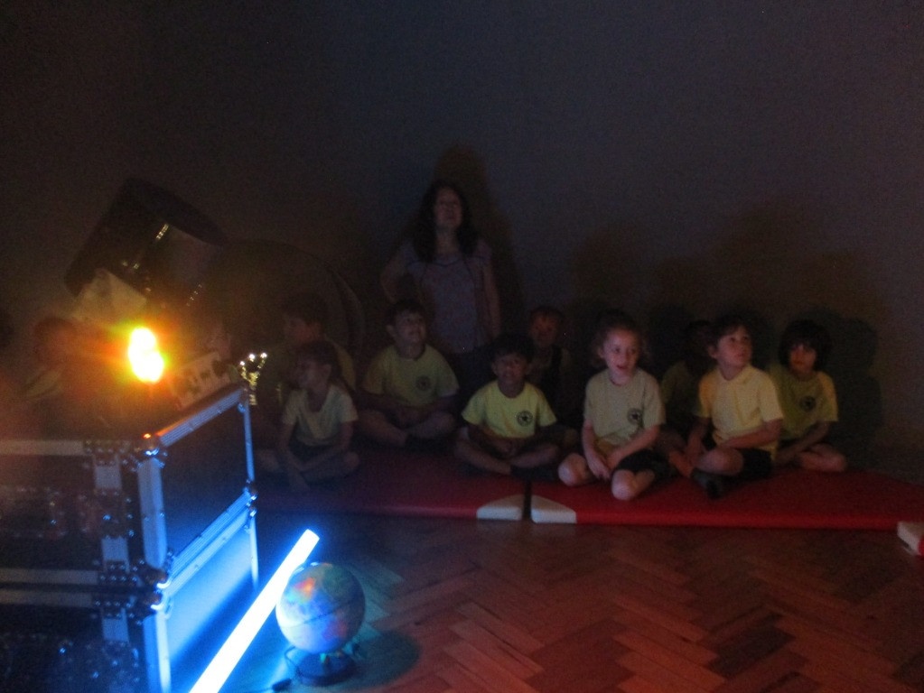 The Year One children were transported to outer space, and were amazed and enthralled as they watched sunbursts, the planets and were told stories about the stars, and were encouraged to write their own stories.
