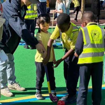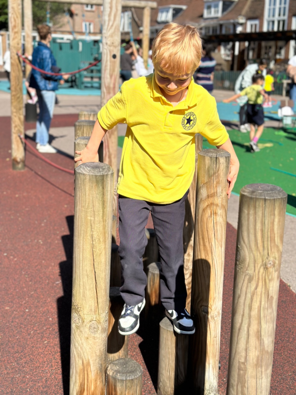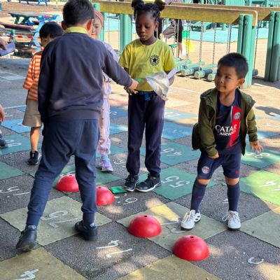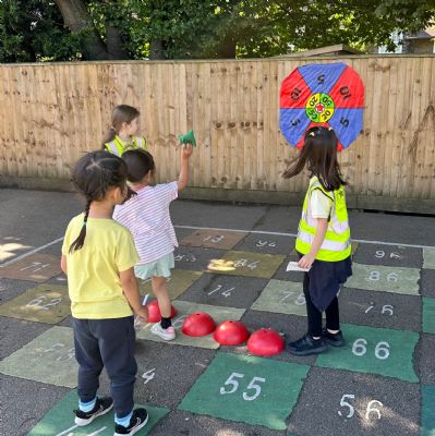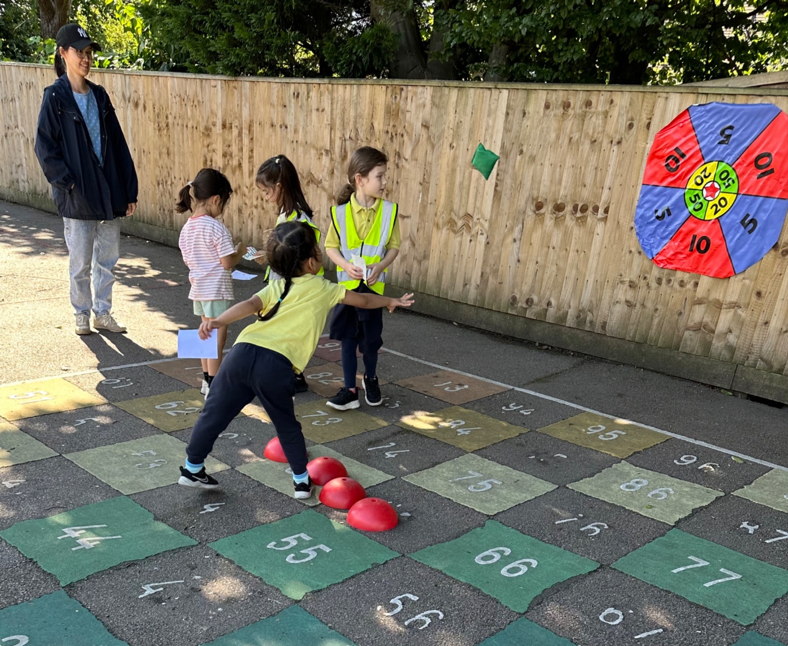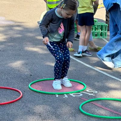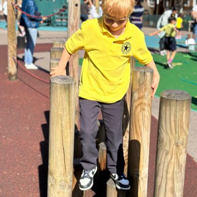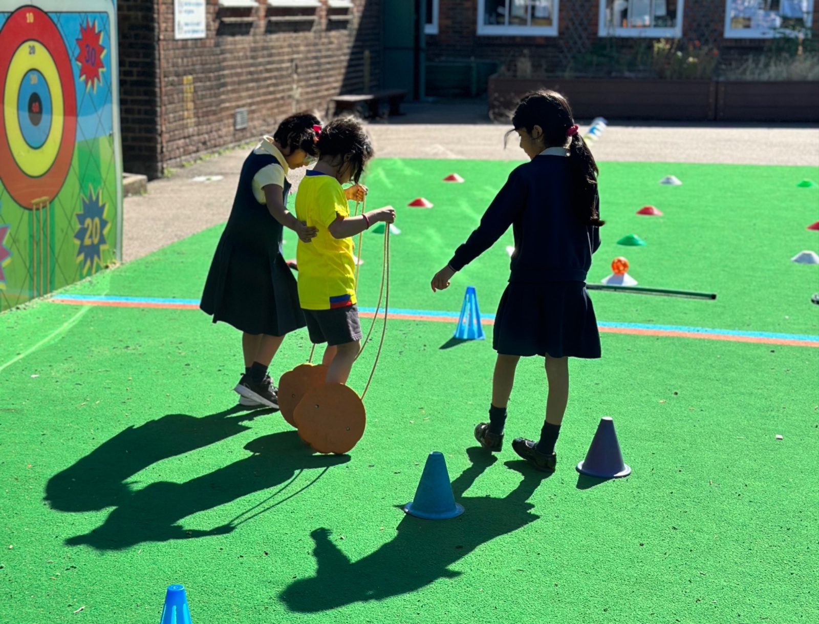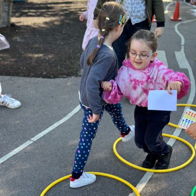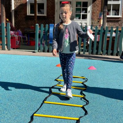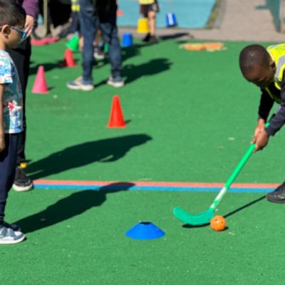 What a fun morning we had! The reception children took part in 15 different physical challenges, including aiming beanbags at a target; walking on stilts; dribbling a ball with a hockey stick; climbing; balancing; swinging on the monkey bars ... and many more!