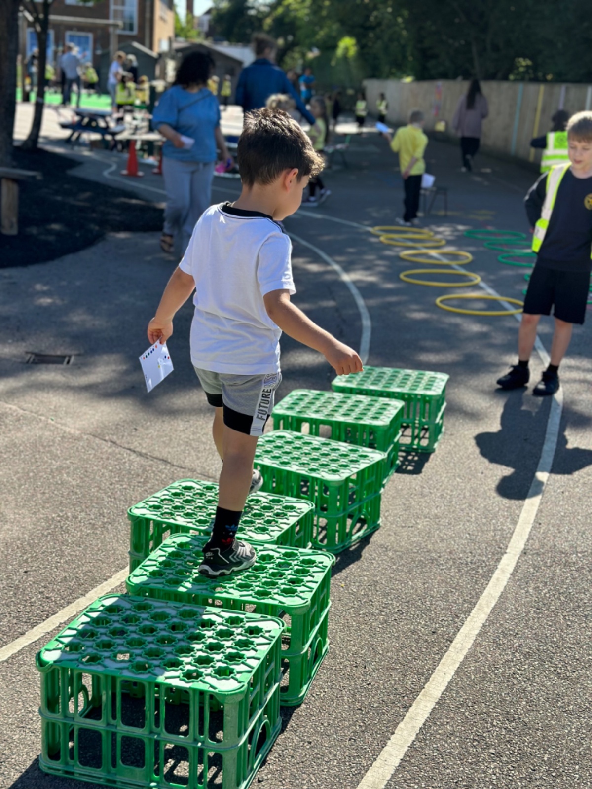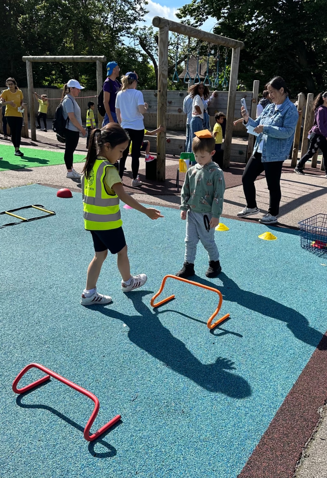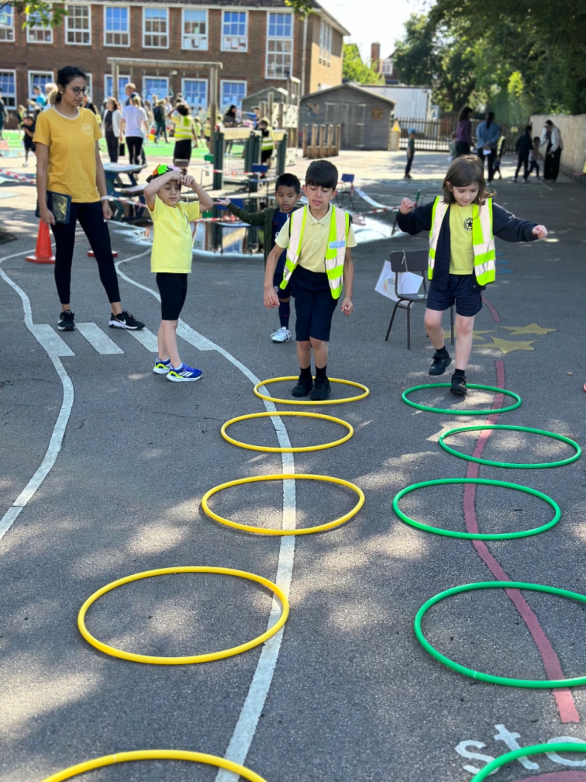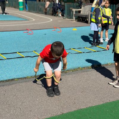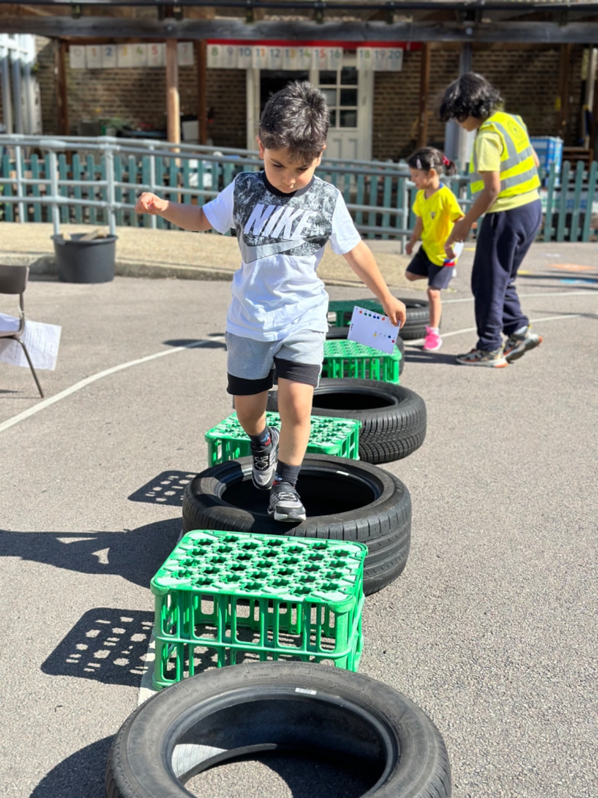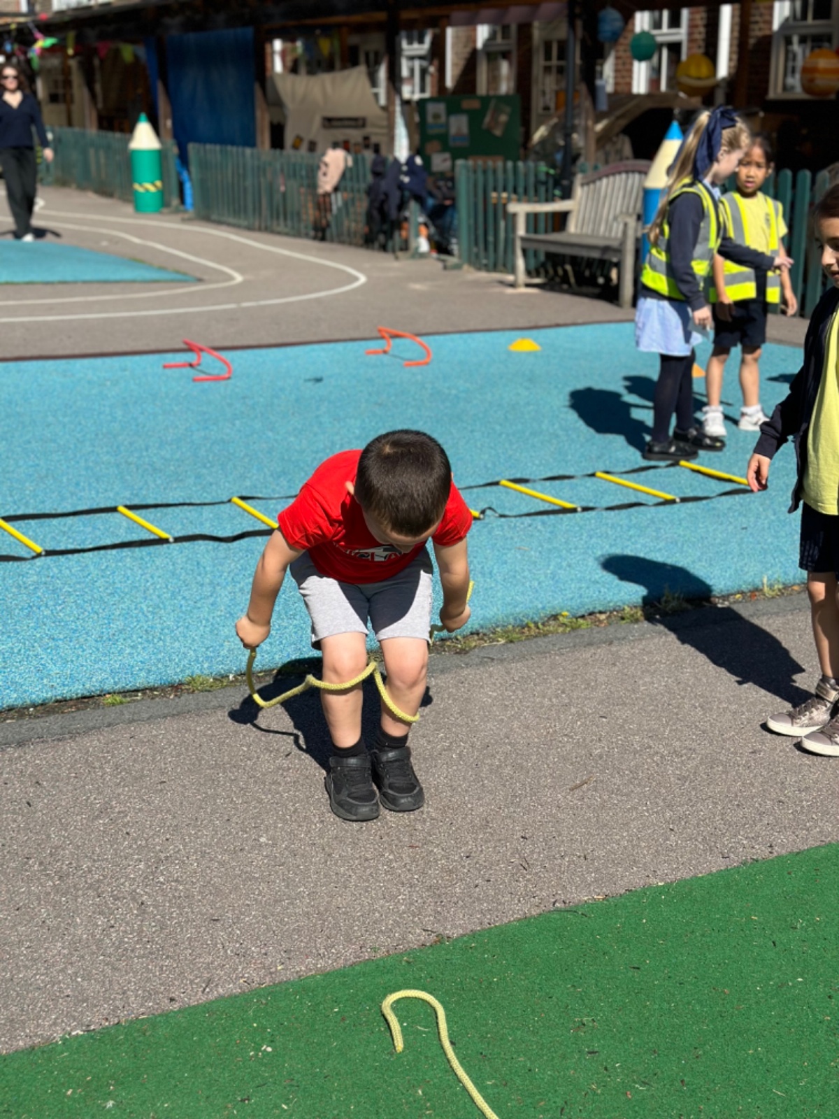 Activities were led by the Year 2 children, and they were fantastic role models! Teaching their younger friends how to do the activities, encouraging them, making sure they were keeping safe and awarding stickers when completed.