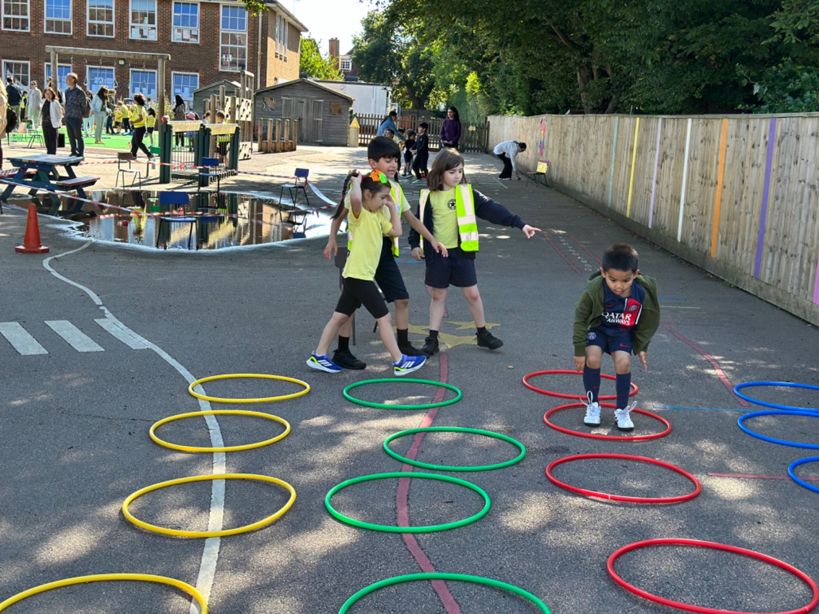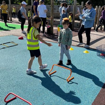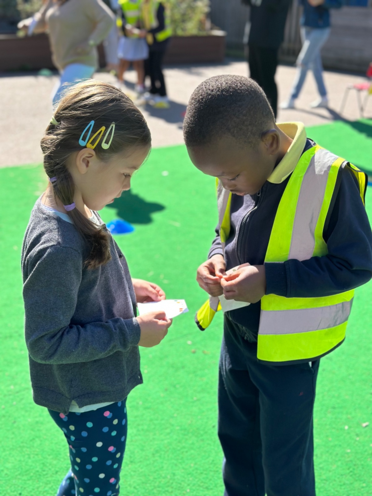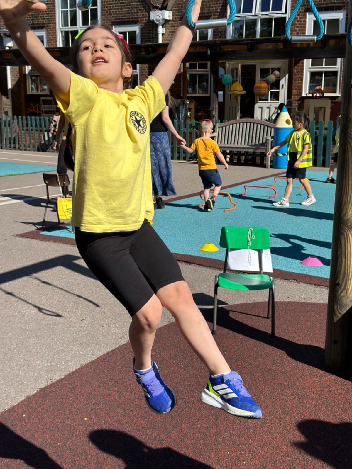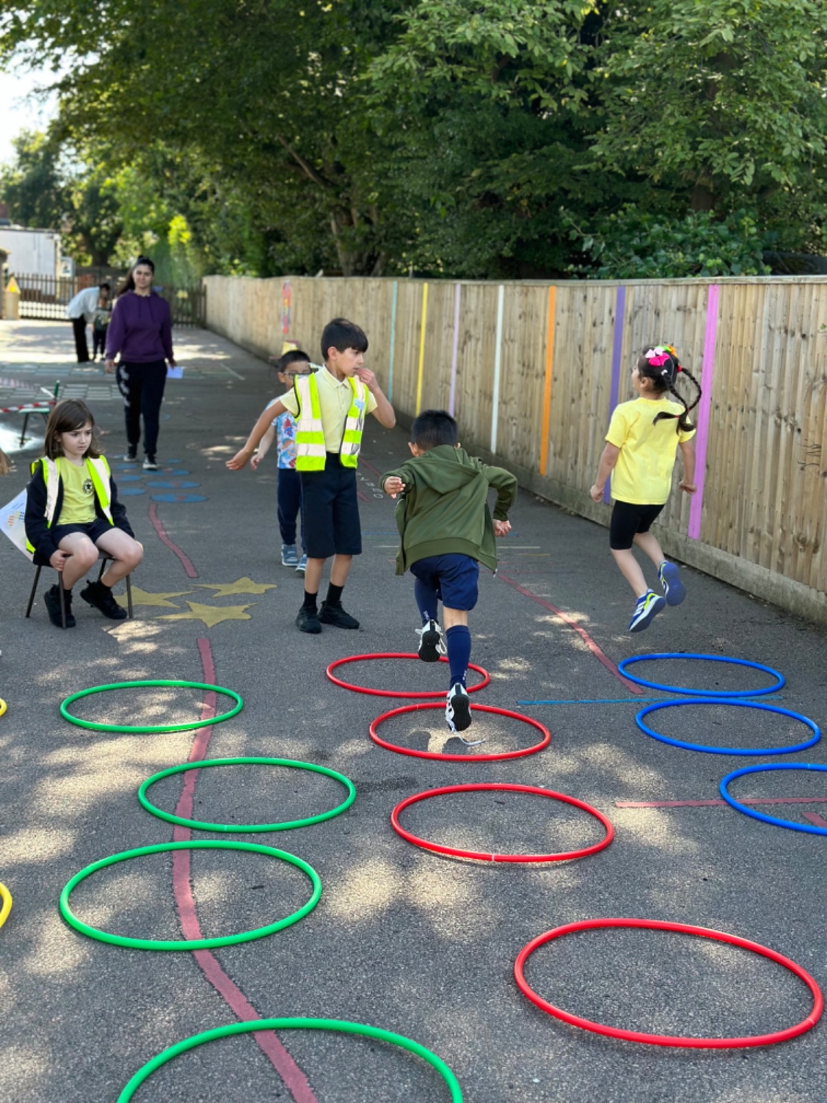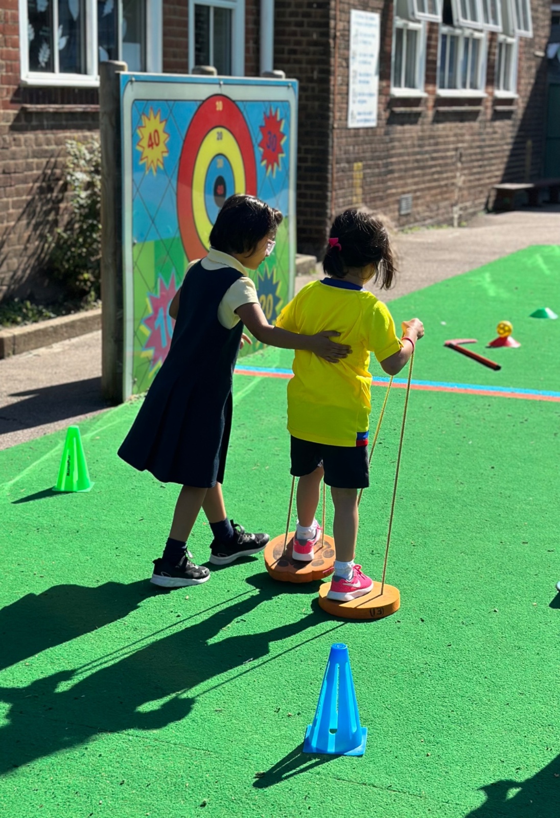 Activities were led by the Year 2 children, and they were fantastic role models! Teaching their younger friends how to do the activities, encouraging them, making sure they were keeping safe and awarding stickers when completed.