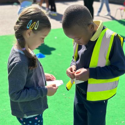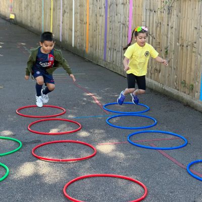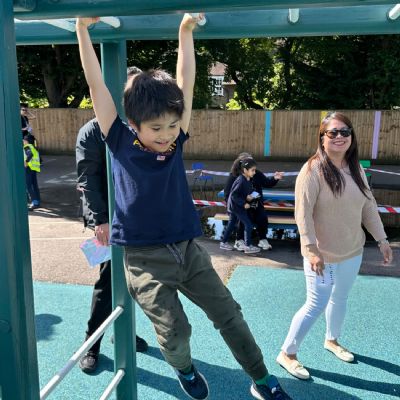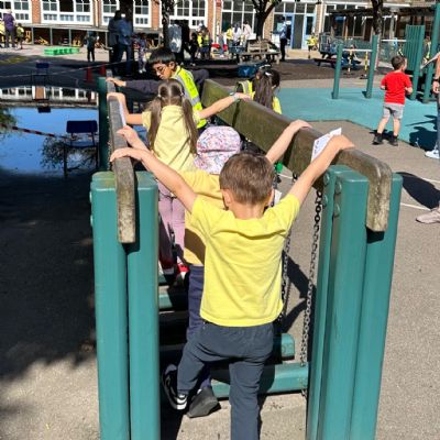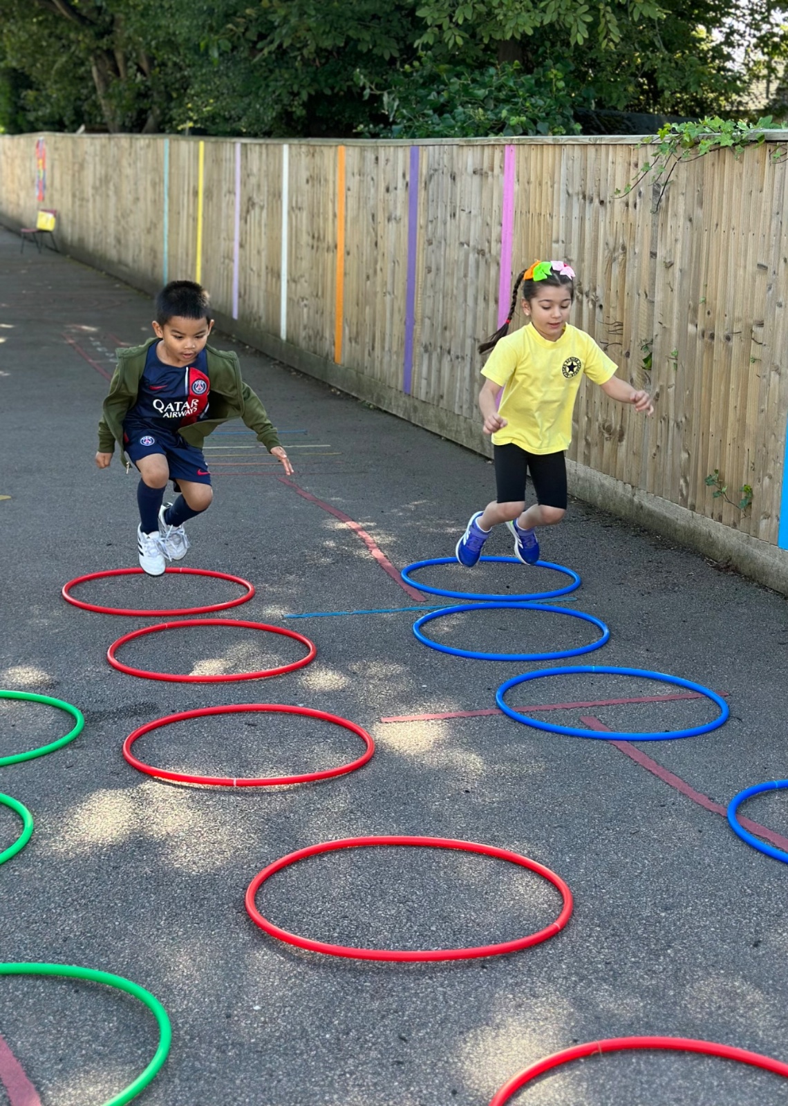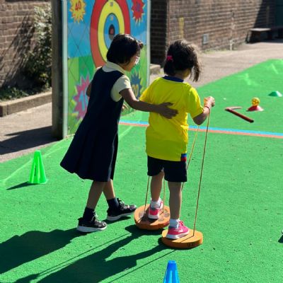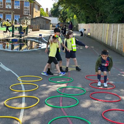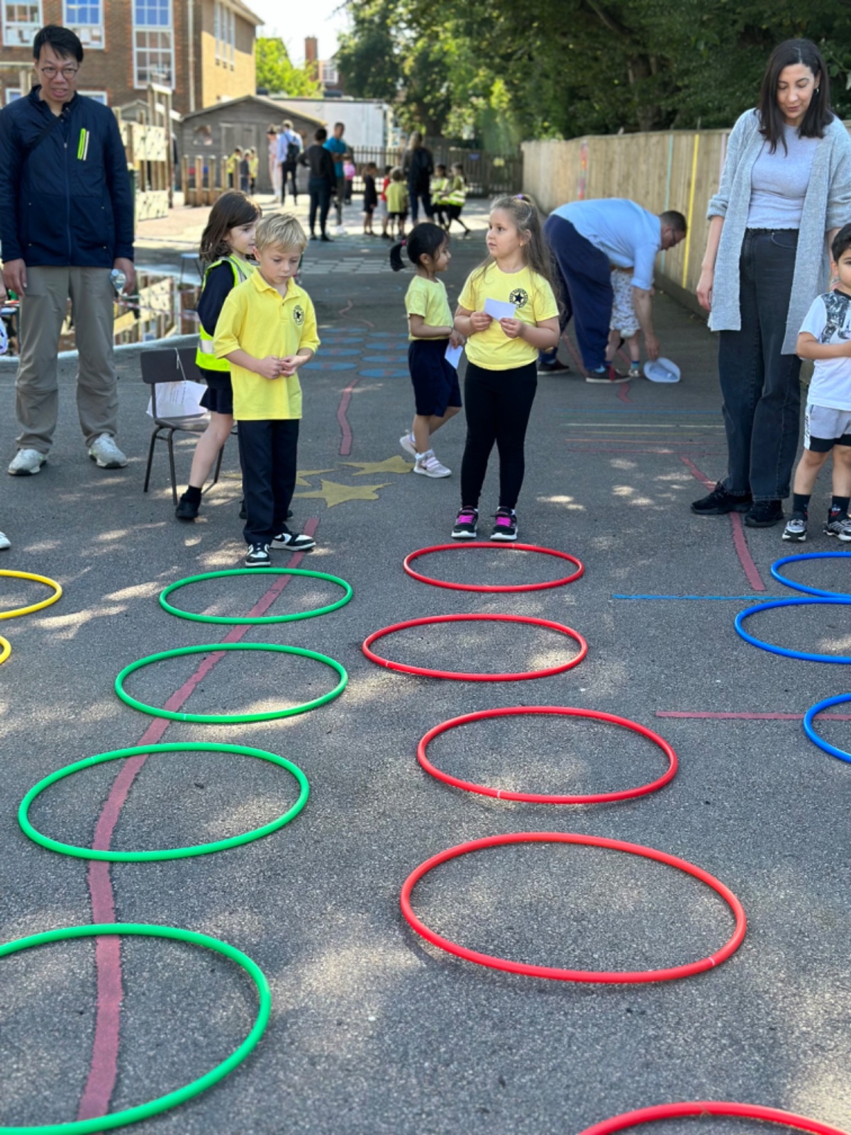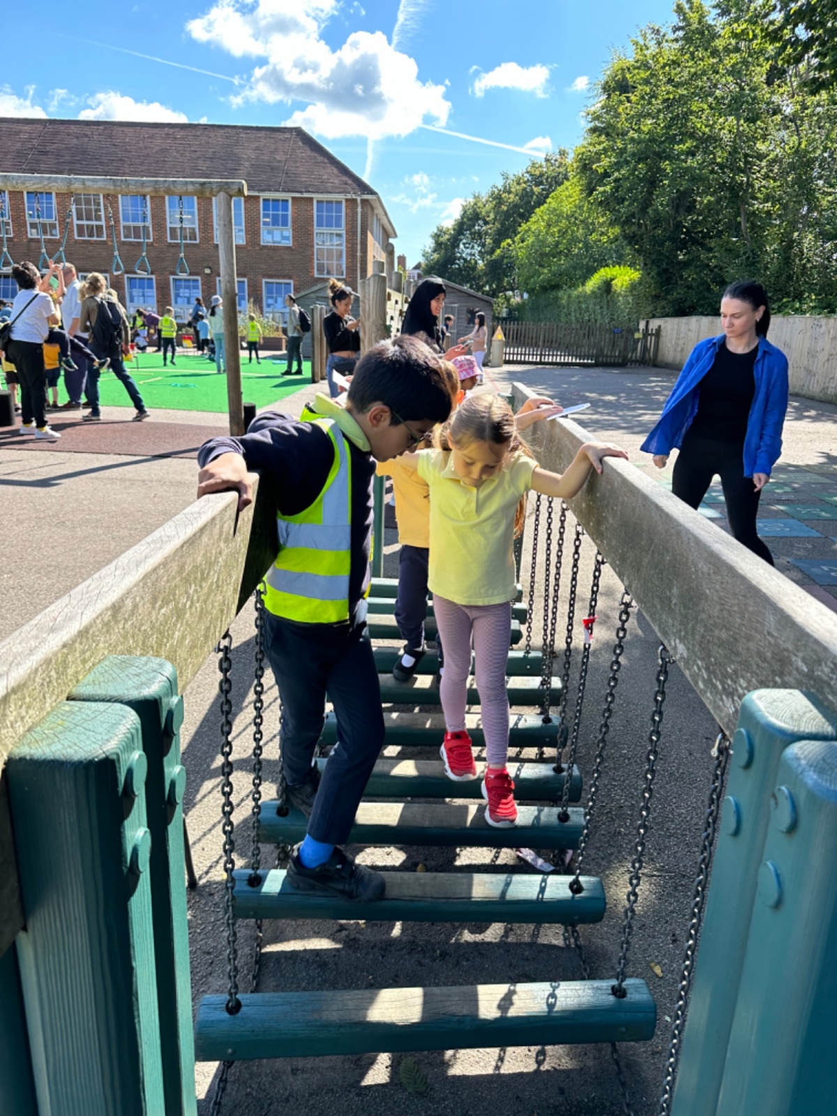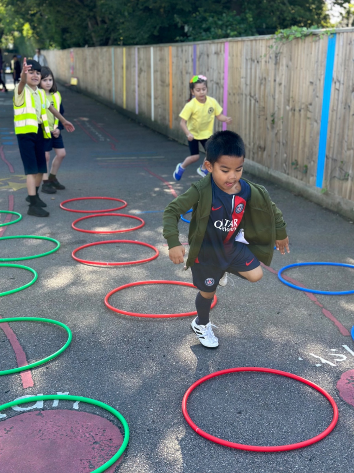 Activities were led by the Year 2 children, and they were fantastic role models! Teaching their younger friends how to do the activities, encouraging them, making sure they were keeping safe and awarding stickers when completed.